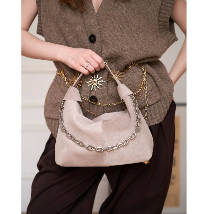 Шкіряна жіноча сумка К70652 від виробника «Welassie» Україна, колір бежевий, матеріал натуральна шкі..