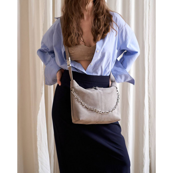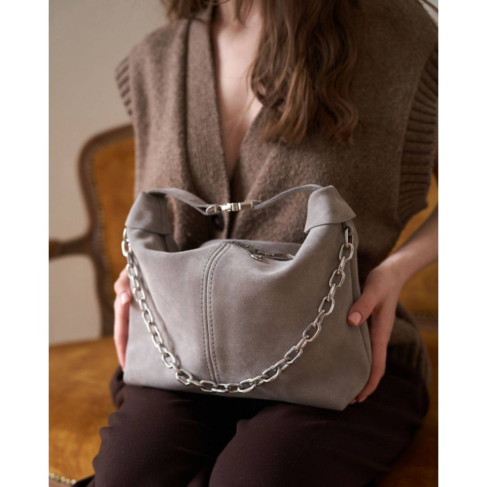 Шкіряна жіноча сумка К7061 від виробника «Welassie» Україна, колір сірий, матеріал натуральна шкіра-..