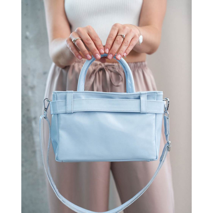 Шкіряна жіноча сумка K73203 від виробника «Welassie» Україна, колір блакитний, матеріал натуральна шкіра. Сумка відкривається за допомогою блискавки. Усередині сумка має одну відкриту кишеню і на блискавці.