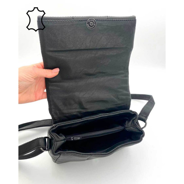 Шкіряна жіноча маленька сумка клатч K6274 з натуральної овечої шкіри. Сумка відкривається за допомогою магніту. Має два відділення. Всередині сумка на підкладці. Довжина плечового ременя 110 см. розміри сумки: довжина 19 см., ширина 8 см., Висота 14 см.