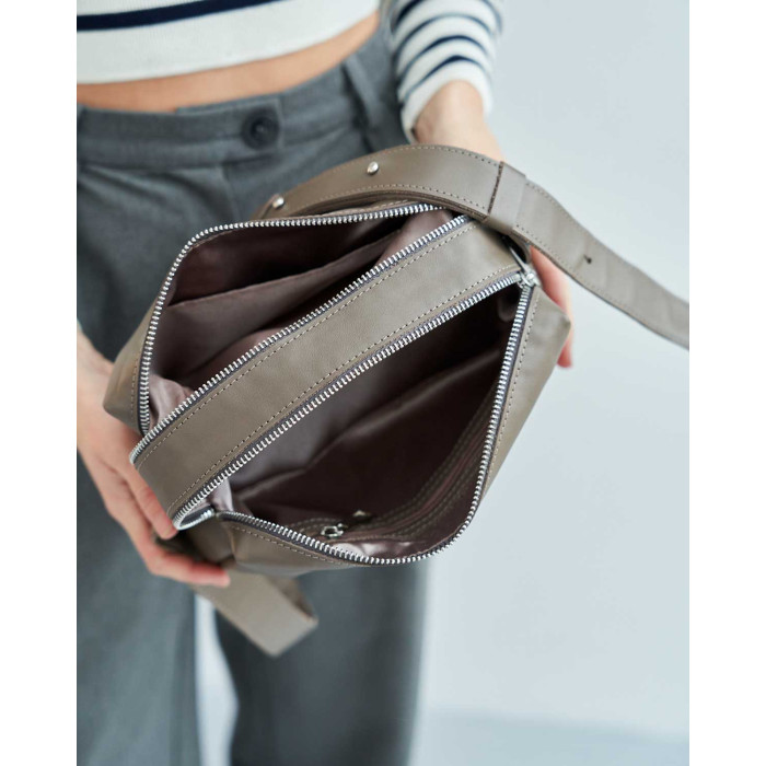 Шкіряна жіноча сумка К74706 від виробника «Welassie» Україна, колір кавовий, матеріал натуральна шкіра. Сумка на два відділення, відкривається за допомогою блискавки. Усередині сумка має одну відкриту кишеню і кишеню на застібці.