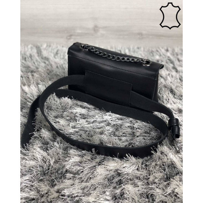 Сумку можна носити як клатч за допомогою ланцюжка, так і за допомогою шкіряного ременя на поясі.