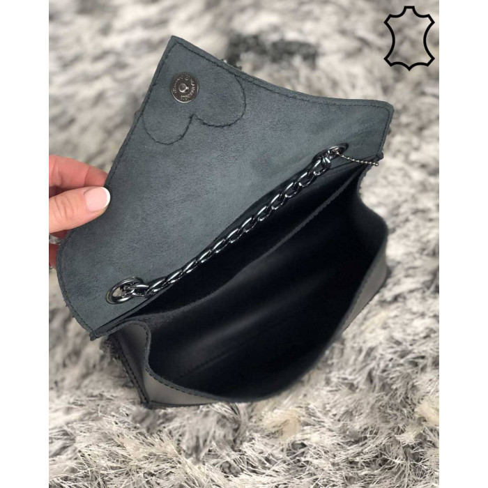 Молодіжна шкіряна сумка-клатч Leya виготовлена з натуральної шкіри. Має одне відділення, яке відкривається за допомогою магніту. Сумка без підкладки, всередині є відділення для ланцюжка.