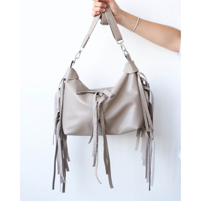 Шкіряна жіноча сумка K72209 від виробника «Welassie» Україна, колір бежевий, матеріал натуральна шкіра. Сумка відкривається за допомогою блискавки. Усередині сумка має одну відкриту кишеню і на застібці