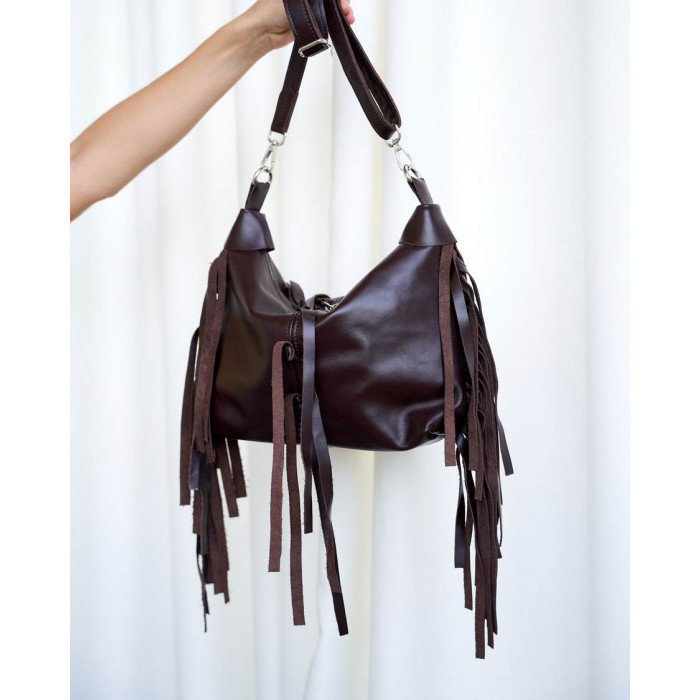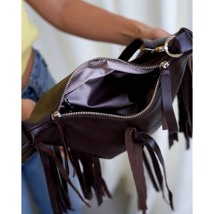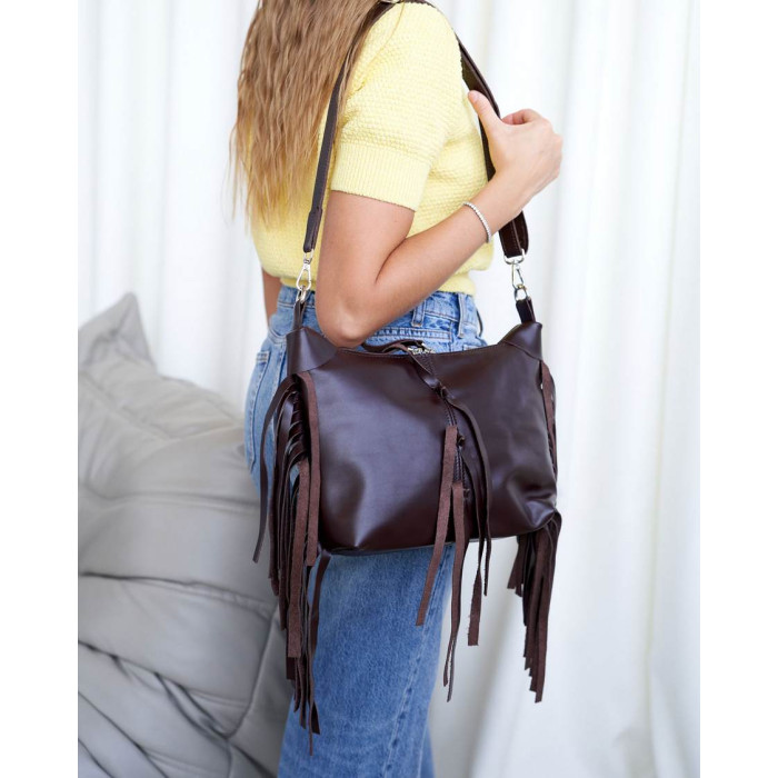 Шкіряна жіноча сумка K72205 від виробника «Welassie» Україна, колір коричневий, матеріал натуральна шкіра. Сумка відкривається за допомогою блискавки. Усередині сумка має одну відкриту кишеню і на застібці