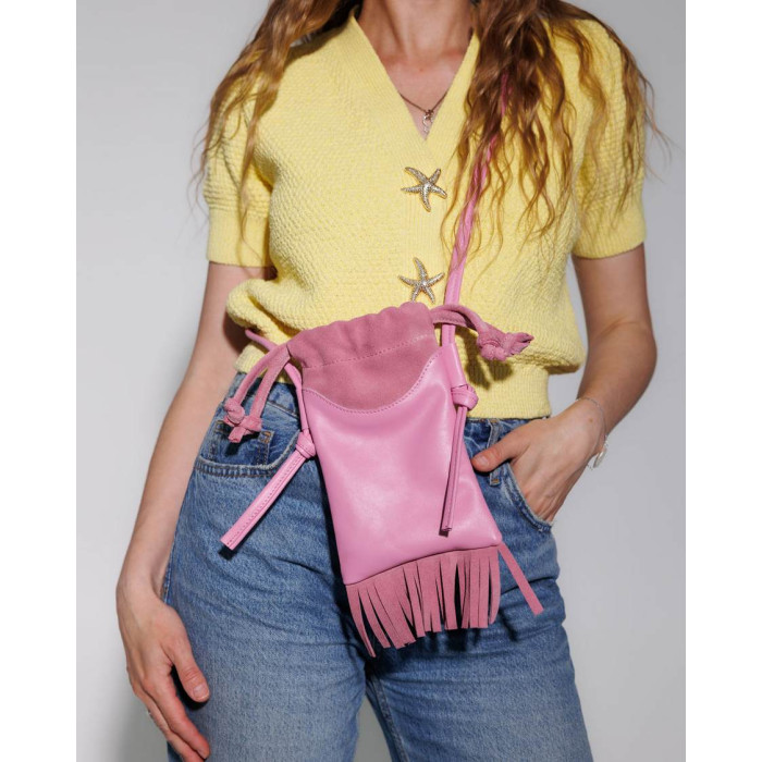 Шкіряна жіноча сумка K72660 від виробника «Welassie» Україна, колір рожевий, матеріал натуральна шкіра. Усередині сумка має одну відкриту кишеню.Сумка має довгий ремінь 150 см.