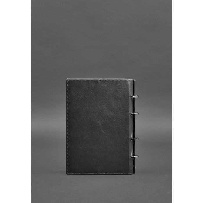 Блокнот на кільцевому механізмі чорного кольору ідеальний для тих, хто цінує практичність і якість. Ця шкіряна записна книжка може похвалитися бездоганною презентабельністю і функціональністю. Її можна носити з собою всюди, без остраху, що сторінки швидко зіпсуються, цього не станеться, завдяки цупкій обкладинці аксесуару. Обкладинка виконана з міцної натуральної шкіри Краст в чорному кольорі. Ця шкіра відмінно тримає форму, має гарну глянцеву поверхню і необмежений термін служби.