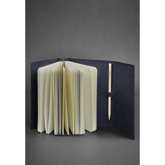Цей ноутбук виконаний в цікавому форм-факторі: не класичний книжковий палітурка, а, так званий "софт-бук", тобто прикріплені до цільного шматка шкіри кілька зошитів. В якості обкладинки - високоякісна шкіра. Всередині - класичний блокнот, розділений на три знімні зошити. У кожному зошиті - по 40 аркушів. Ви самі можете вибрати колір паперу зошитів. Папір чотирьох видів: молочного відтінку (без розмітки), линованная біла, крафт або чорного кольору. Якщо Ви замовите блокнот зі світлими листами, то це буде шведська дизайнерська папір Munken щільністю 90 г/м2, молочного кольору, а також італійська дизайнерська папір серії Flora avorio, щільністю 100 г/м2, кремового кольору, з вкрапленнями, що імітують папір ручної роботи. А якщо Ваш вибір впаде на темні аркуші, то в кожному зошиті - по 40 аркушів серії Notturno (Італія), щільністю 90 г/м2, насичено-чорного кольору. Увага! У зошиті темні аркуші! Писати - тільки білою ручкою і шокувати оточуючих :) Для своїх записів у такому блокноті не забудьте купити білу гелеву ручку :)