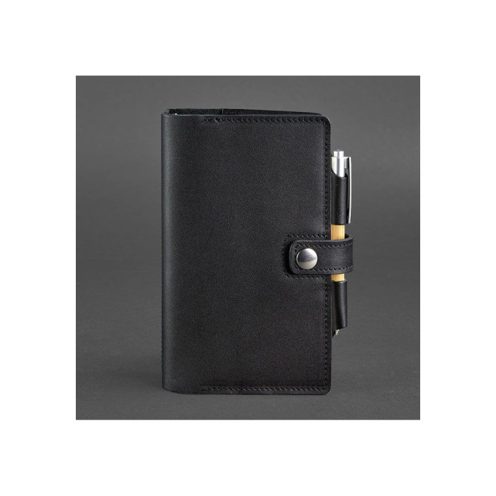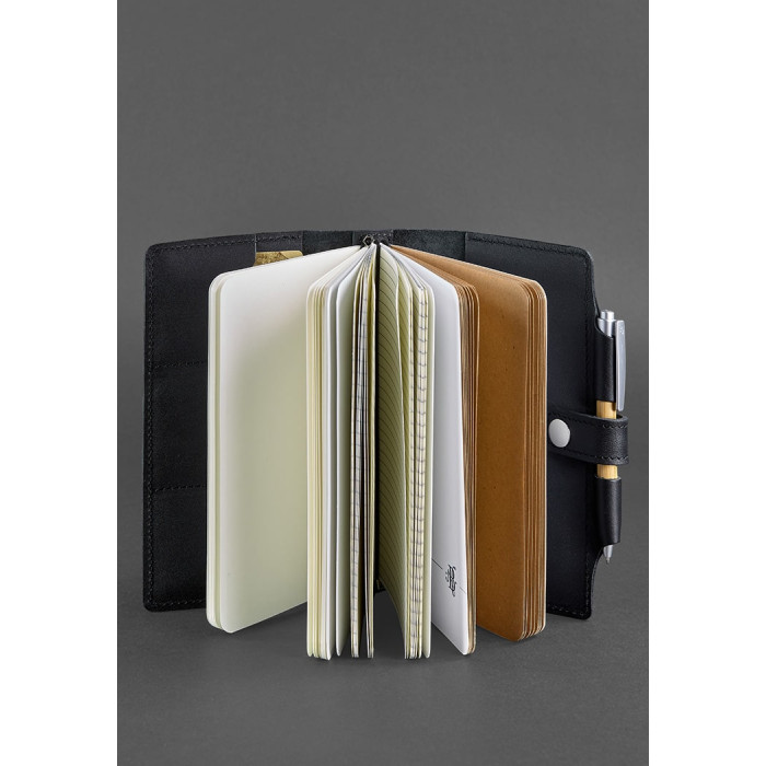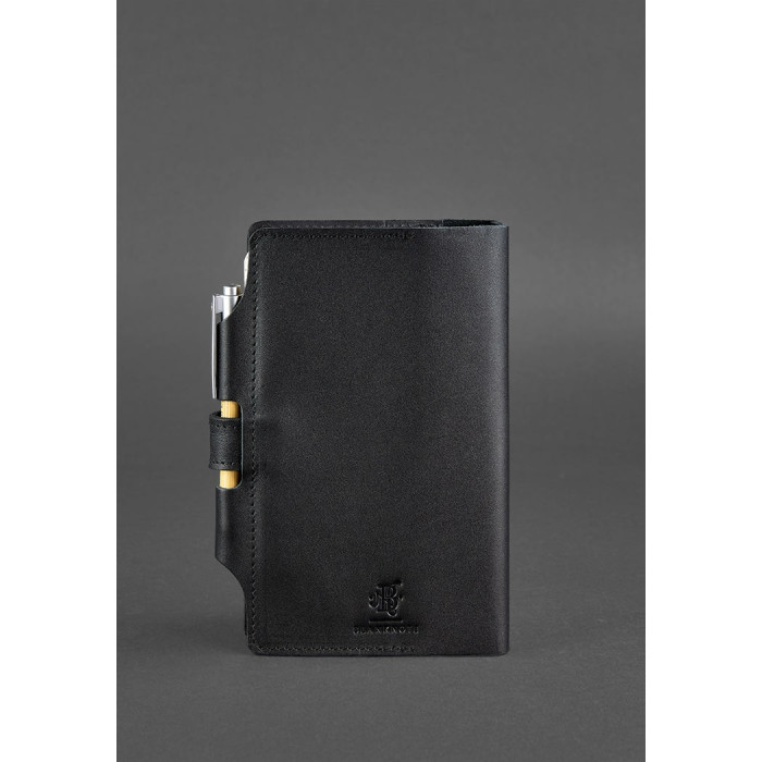 Закривається СофтБук на шкіряний хлястик з кнопкою. Є зручний тримач для ручки або олівця. Блокнот виконаний повністю вручну. Для виготовлення обкладинки блокнота використовується натуральна шкіра в чорному кольорі. На задній частині обкладинки - фірмове тиснення логотипу майстерні BlankNote.