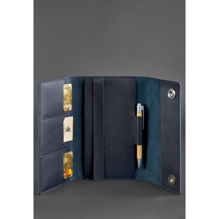 Вам не доведеться шукати ручку серед іншого вмісту сумки, вона кріпиться праворуч від блокнота в спеціальному утримувачі. Для пластикових карт, документів, або готівки також передбачені відділення зліва. Обкладинка зроблена з якісної натуральної шкіри і закривається на два магнітних замка, так що випробування часом їй не страшні.