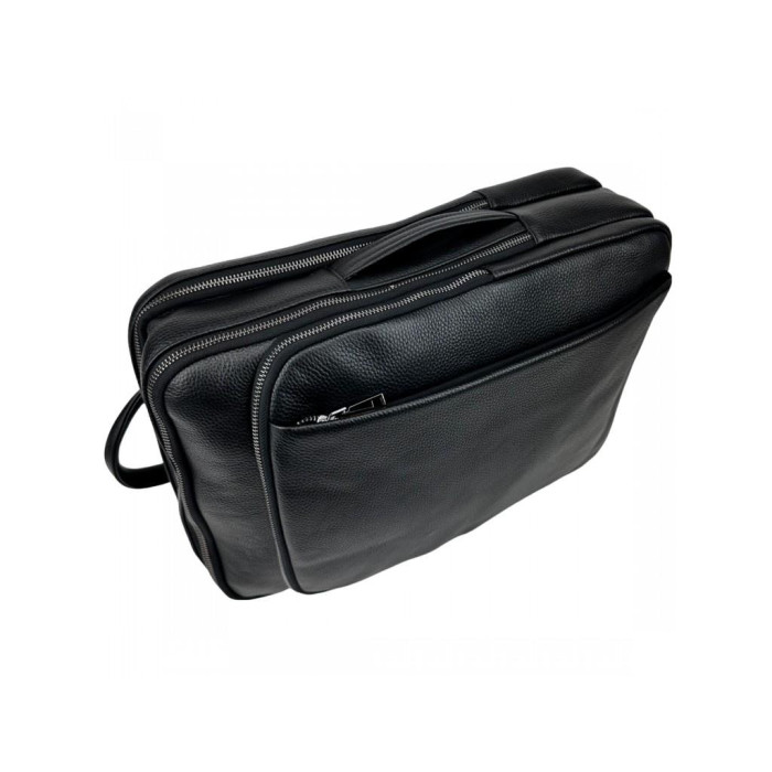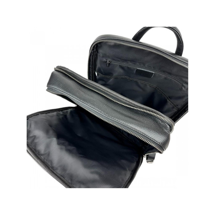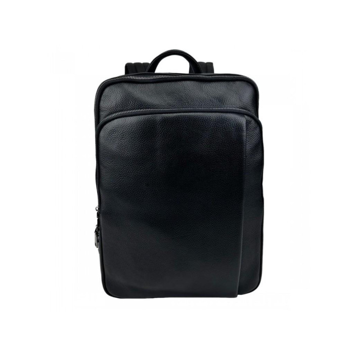 Великий шкіряний чорний рюкзак для ноутбука Tiding Bag A25F-8528A виготовлений із натуральної шкіри чорного кольору, що має зернисту матову текстуру.