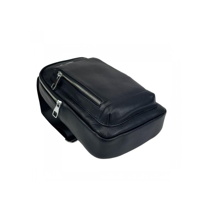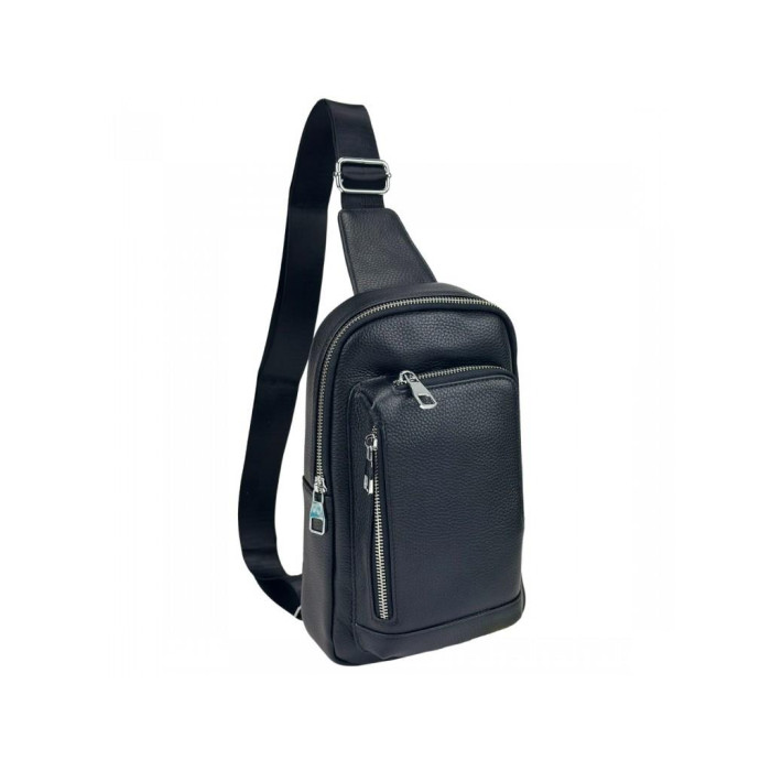 Чоловіча шкіряна сумка слінг чорного кольору.
