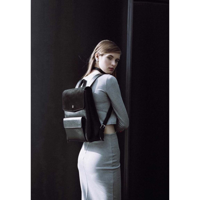 Міський рюкзак black point Blank, з якісної натуральної шкіри та замші, з срібним декором на клапані.