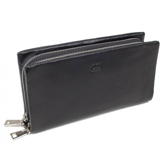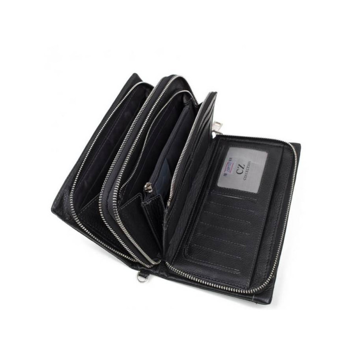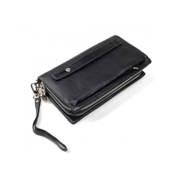 Чоловічий клатч від виробника Horton Collection пошитий з натуральної шкіри європейської якості. Має класичний дизайн і акуратний зовнішній вигляд. Основні відділення закриваються на металеву блискавку. Всередині є відсіки для купюр, розділені кишенею-перегородкою на блискавці для металевих грошей. Також передбачені слоти для банківських карт і прозора кишенька для прав або фото. Для зручної носіння в руці є два варіанти: знімний короткий ремінець і регульована ручка із зовнішнього боку.