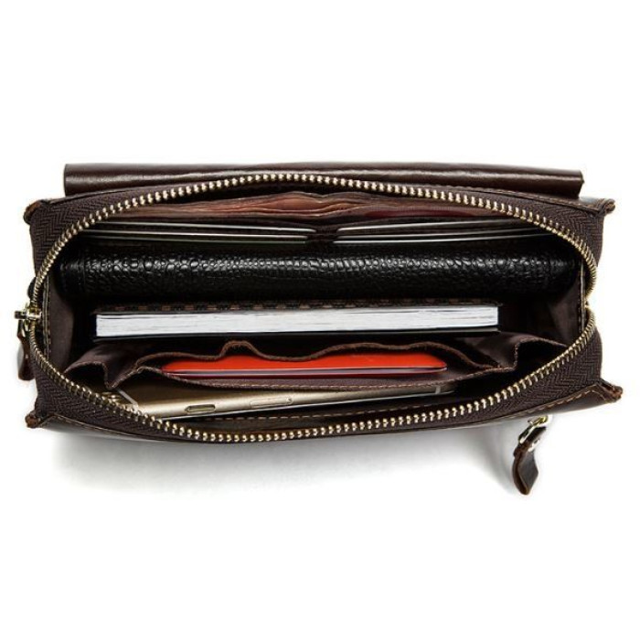 Солідний і місткий клатч. Підійде як для жінок, так і для чоловіків. Всередині аксесуара поєднання шкіри та текстилю. Клатч має зручний і оптимальний розмір. Такий клатч з легкістю замінить вам гаманець і невелику сумку. В нього легко помістяться: гроші, телефон, пачка цигарок, кредитки та інші дрібниці на кожен день. Аксесуар можна носити як в руці, так і за допомогою ремня на руці. Модель буде ідеальним подарунком з будь-якого приводу.