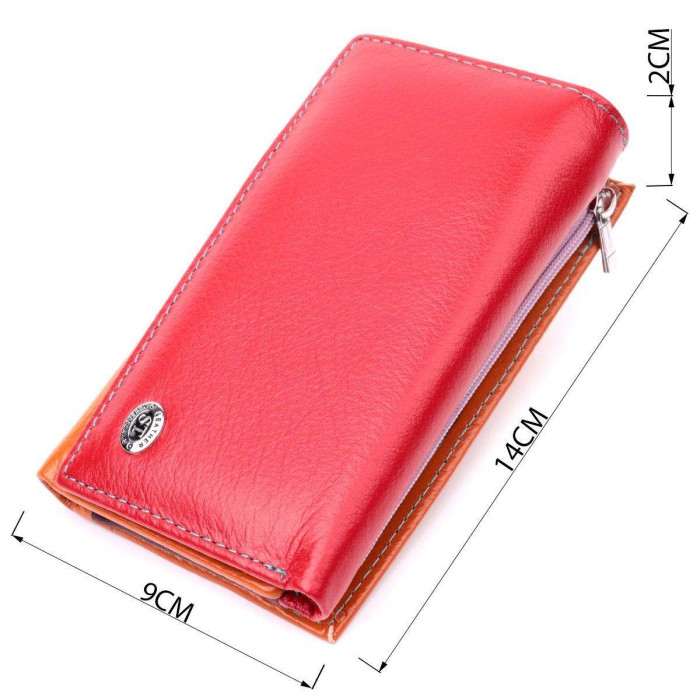 Стильне жіноче портмоне в три складання зручного середнього розміру з натуральної шкіри найвищої якості. Перше, що впадає в око це колірне рішення, замість однотонного аксесуара ми маємо різнокольоровий, який містить два основні зовнішні кольори - червоний і помаранчевий і кілька додаткових усередині. Перше, що впадає в око це колірне рішення, замість однотонного аксесуара ми маємо різнокольоровий, який містить два основні зовнішні кольори і кілька додаткових всередині. Шкіряне портмоне дуже практичне і служить досить довго. Аксесуар складається з двох містких кишень для купюр, кишені на блискавці через всю довжину, п'яти осередків для карт, прозорого віконця для пропуску та зовнішньої кишені на блискавці з перегородкою, що чудово прослужить для монет. Портмоне доповнено надійною фурнітурою. Укомплектований гаманець у фірмову картонну коробку білого кольору. Виріб стане ідеальним подарунком для дівчини будь-якого віку.