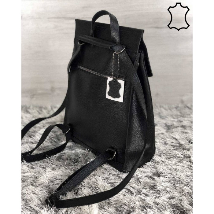 Жіночий молодіжний сумка-рюкзак WeLassie, виготовлений з натуральної шкіри високої якості. Основне відділення застібається на блискавку, на бічних частинах сумки встановлені кнопки для максимального закривання сумки. Всередині є нашита косметичка, а також два кишені для дрібних предметів. Є зовнішня кишеня на блискавці для дрібних предметів. Ремінці регулюються за допомогою протяжок з рюкзака в сумку.
