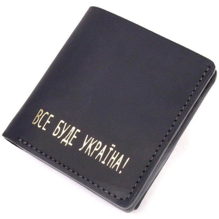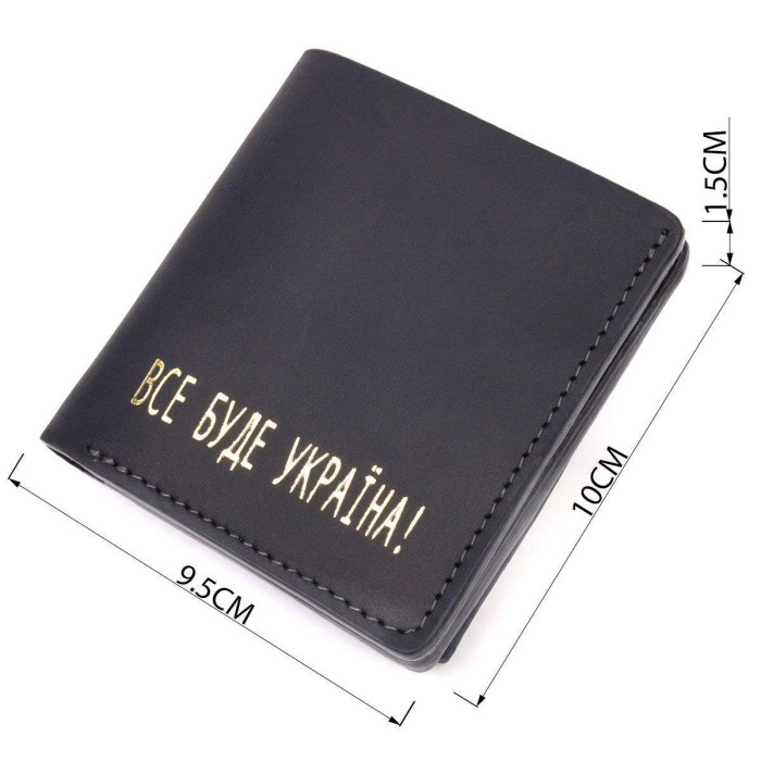 Надійний шкіряний гаманець з патріотичним написом “Все буде Україна”. Виріб пошитий із якісної гладкої шкіри, з високими показниками зносостійкості. Портмоне має два великих відділення для купюр усіх номіналів, а також достатню кількість відділень для карток та монетницю, застібається виріб на надійний магніт. Шкіряний гаманець стане чудовим подарунком на всі випадки життя.