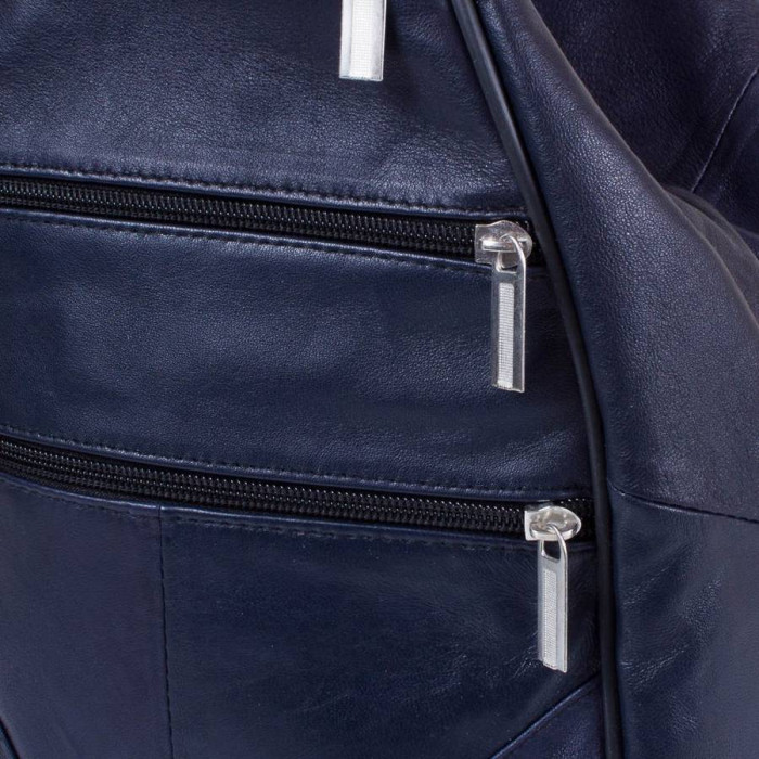 Кількість відділів: 1 основне відділення. Всередині прорізна кишеня на блискавці і накладна відкрита кишеня. Зовні на лицьовій стороні рюкзака є 3 прорізні кишені на блискавці, а на тильній стороні виробу 2 прорізних кишені на блискавці