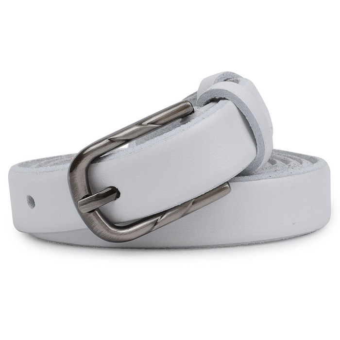 Універсальний жіночий поясок в білому кольорі від українського виробника. Має красиву акуратну пряжку в класичному стилі. Матеріал виготовлення - натуральна високоміцна шкіра з відмінними показниками в процесі експлуатації. Такий ремінь стане хорошим і практичним подарунком на будь-яке свято.