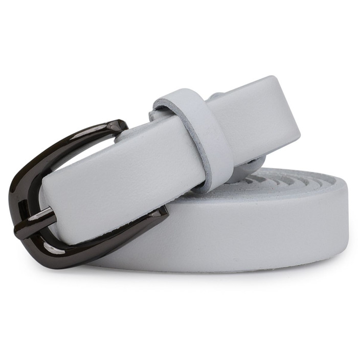 Тонкий легкий ремінець для жінок в ніжному білому кольорі. Виготовлений з високоміцної і зносостійкої натуральної шкіри, завдяки якій виріб буде радувати Вас дуже довго. Пряжка в даній моделі - класична, фактура - гладка і приємна на дотик. Такий ремінь стане практичним і дуже корисним подарунком.