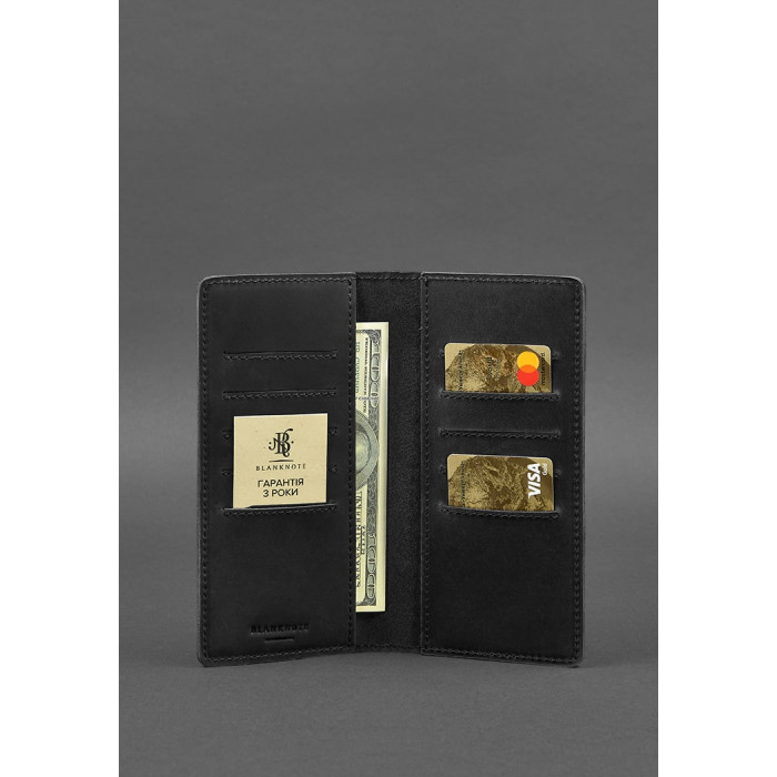 Класичне портмоне-гаманець сподобається людям, які цінують якісні та стильні речі. Чорний колір аксесуара в тандемі з вінтажною натуральною шкірою дозволить легко поєднувати портмоне з діловим чином.