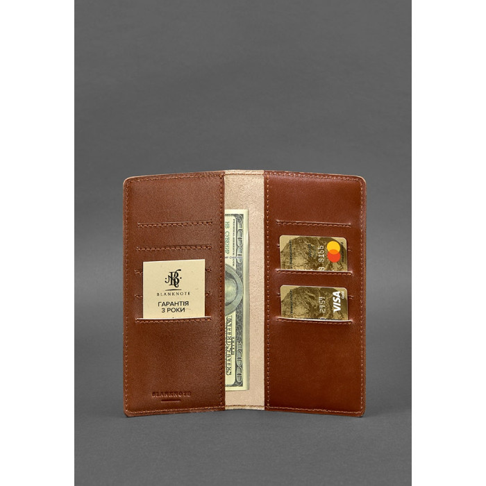 Усередині аксесуара є два просторих відділення для купюр, а також 10 прорізних кишень для платіжних і дисконтних карток.