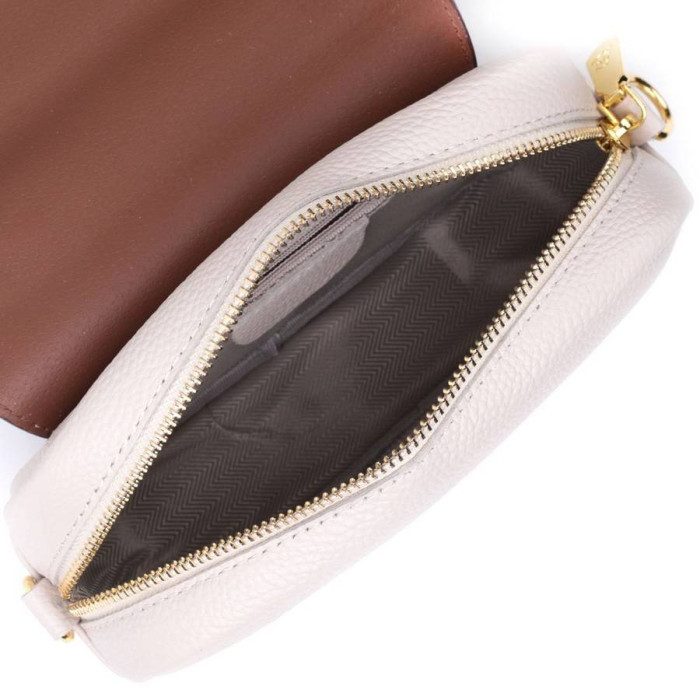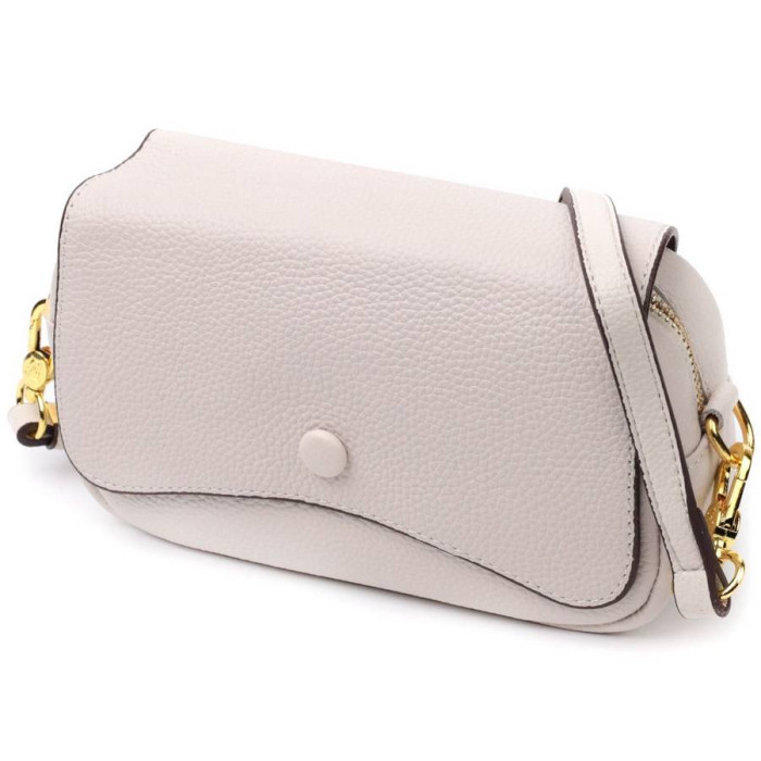 Унікальна сумка жіноча з фігурним клапаном з натуральної шкіри. Аксесуар складається з одного основного відділення, потайної кишені на блискавці та кишені відкритого типу. Носити сумку можна на плечі і через плече, для цього є шкіряний ремінь, що знімається. У виробі використано якісну фурнітуру кольору жовтого золота. Шкіряна сумка – найкращий подарунок для будь-якої дівчини.