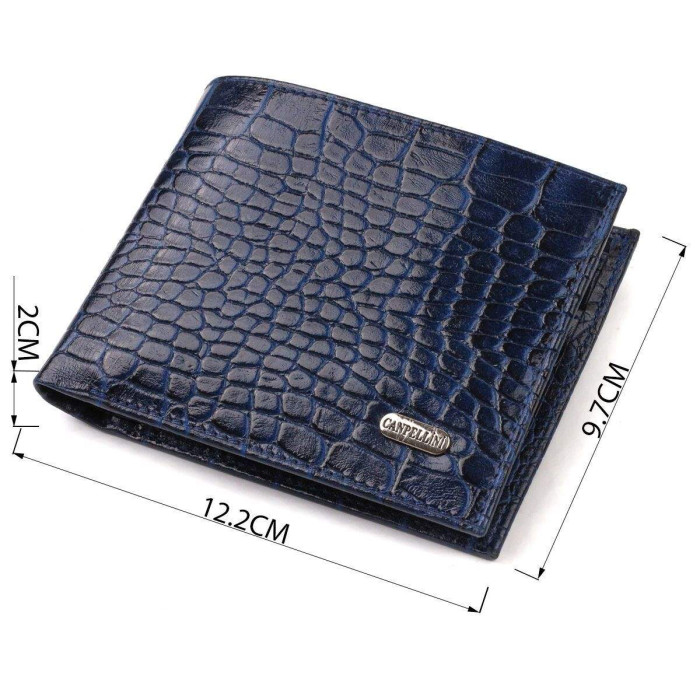 Чудовий чоловічий гаманець із натуральної шкіри з тисненням під крокодила. Аксесуар має основне відділення для купюр, з кишенею-перегородкою на блискавці, яка може служити монетницею, три кишені для карток, дві кишені під сіточкою для перепусток і дві приховані кишені. На лицьовій стороні, у правому нижньому куті металевий логотип компанії виробника. Якщо ви вибрали товар цієї фірми, можете не сумніватися, що виріб прослужить дуже довго і не втратить свого первісного вигляду.