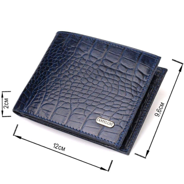 Модний чоловічий гаманець із натуральної шкіри з тисненням під крокодила. Аксесуар має одне відділення для купюр усіх номіналів, шість осередків для карток, три кишені під сіточкою для документів та монетницю. Закривається аксесуар навпіл без застібки. На лицьовій стороні, у правому нижньому куті металевий логотип компанії виробника. Купуючи шкіряний аксесуар цієї фірми, собі або на подарунок, будьте певні, що він прослужить Вам не один рік.