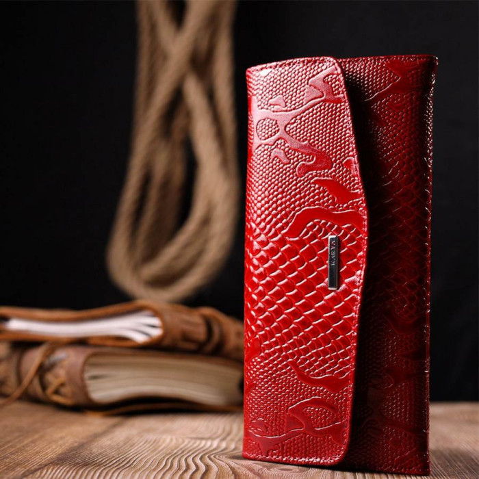 Чудовий жіночий гаманець із натуральної шкіри, з тисненням під рептилію. Складається аксесуар навпіл, закривається клапаном на кнопку. Якісна фурнітура доповнює та прикрашає виріб. Такий гаманець з натуральної шкіри - це ідеальний варіант на кожен день для тих, хто цінує якість, зручність та комфорт, а також чудово доповнюватиме Ваш повсякденний образ. Запакований аксесуар у фірмову коробку та пакет бренду. Вироби з натуральної шкіри завжди будуть чудовим подарунком для близької людини.