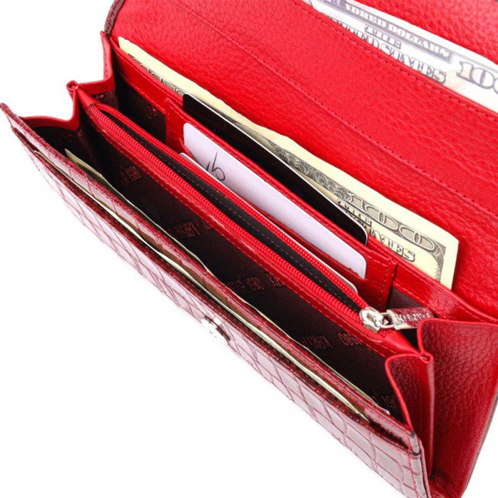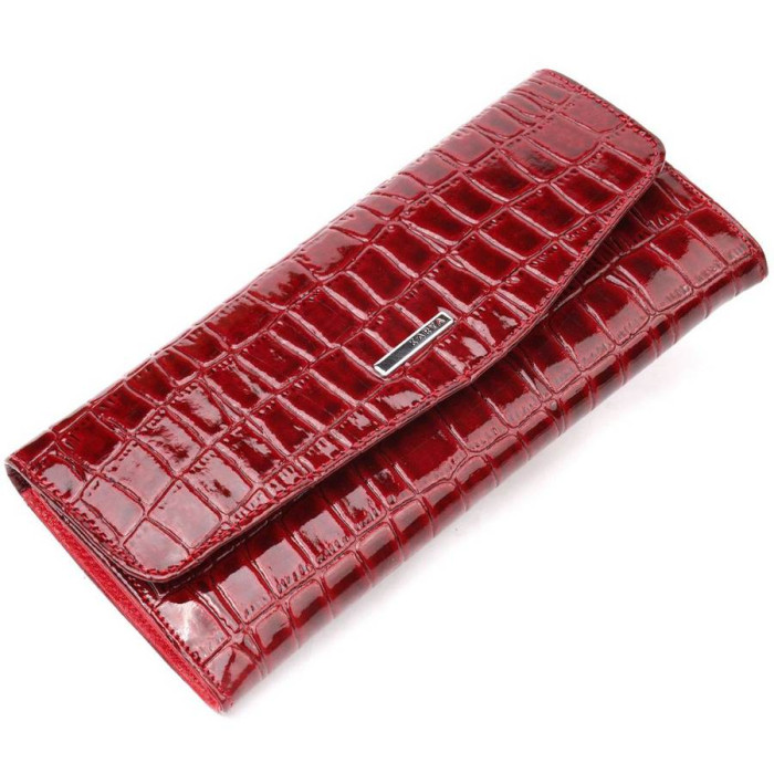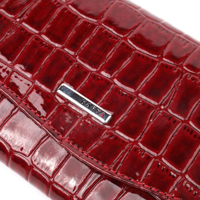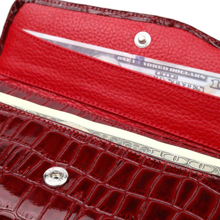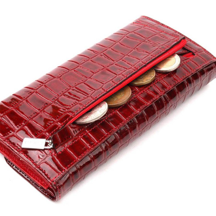 Практичний жіночий гаманець із натуральної лакованої шкіри, з тисненням під крокодила. Складається аксесуар навпіл, закривається клапаном на кнопку. Якісна фурнітура доповнює та прикрашає виріб. Такий гаманець з натуральної шкіри - це ідеальний варіант на кожен день для тих, хто цінує якість, зручність та комфорт, а також чудово доповнюватиме Ваш повсякденний образ. Запакований аксесуар у фірмову коробку та пакет бренду. Вироби з натуральної шкіри завжди будуть чудовим подарунком для близької людини.