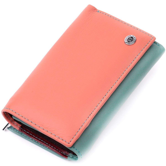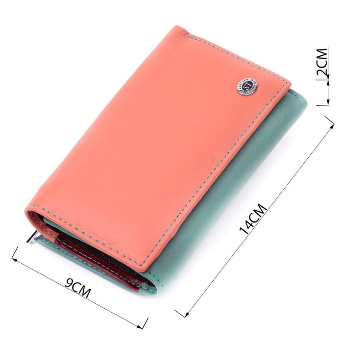 Жіноче портмоне в три складання зручного середнього розміру з натуральної шкіри найвищої якості. Перше, що впадає в око це колірне рішення, замість однотонного аксесуара ми маємо різнокольоровий, який містить два основні зовнішні кольори і кілька додаткових всередині. Шкіряне портмоне дуже практичне і служить досить довго. Аксесуар складається з двох містких кишень для купюр, кишені на блискавці через всю довжину, п'яти осередків для карт, прозорого віконця для пропуску та зовнішньої кишені на блискавці з перегородкою, що чудово прослужить для монет. Портмоне доповнено надійною фурнітурою. Укомплектований гаманець у фірмову картонну коробку білого кольору. Виріб стане ідеальним подарунком для дівчини будь-якого віку.