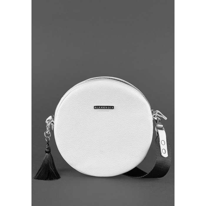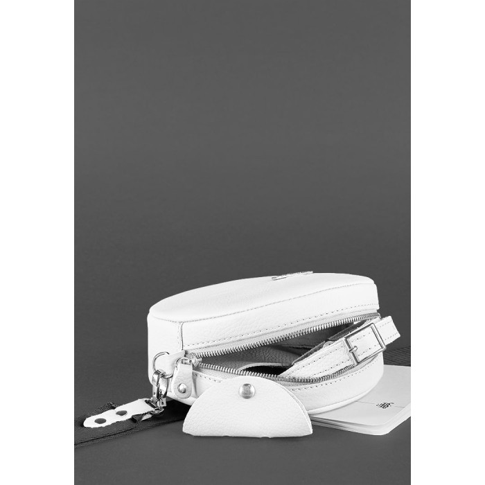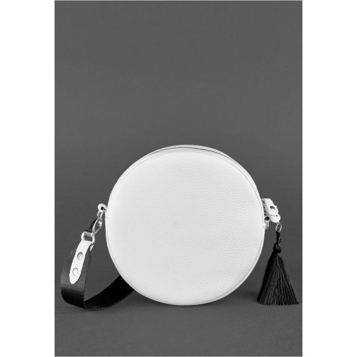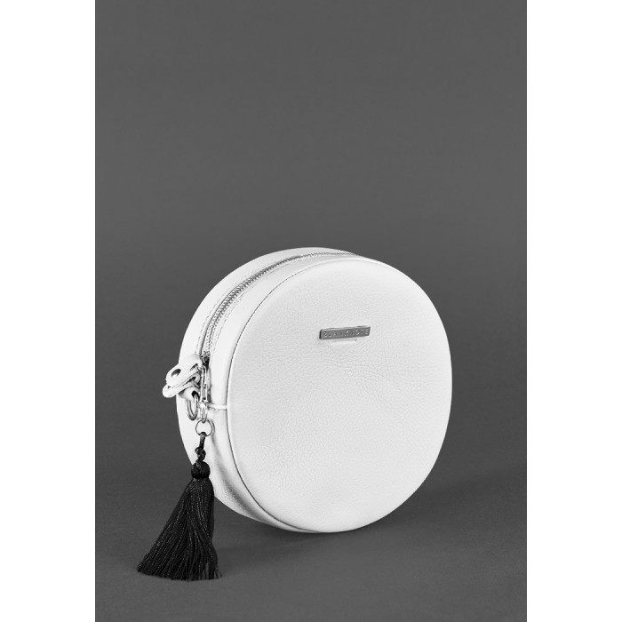 Біла кругла сумочка з натуральної шкіри стане відмінним доповненням ідеального образу сучасної дівчини, яка стежить за трендами і модними новинками.