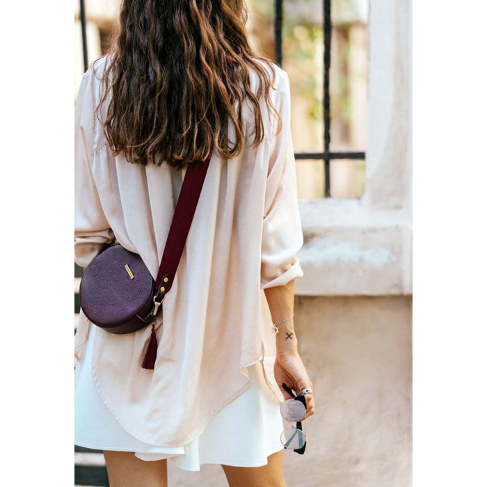 Представляємо Вашій увазі нашу нову крос-боді чаруючого винного відтінку. Ця сумка не схожа на інші моделі тим, що вона доповнена двома змінними ремінцями. Змінюючи плечовий ремінь, Ви міняєте настрій і характер сумочки. З тонким шкіряним ремінцем сумка виглядає дуже витончено і елегантно. А більш широкий текстильний ремінець привносить якусь легкість і не формальність в образ.