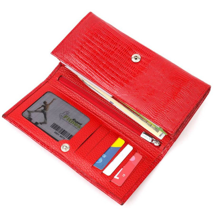 Практичний жіночий гаманець із натуральної лакованої шкіри, з тисненням під рептилію. Складається аксесуар навпіл, закривається клапаном на кнопку. Якісна фурнітура доповнює та прикрашає виріб. Такий гаманець з натуральної шкіри - це ідеальний варіант на кожен день для тих, хто цінує якість, зручність та комфорт, а також чудово доповнюватиме Ваш повсякденний образ. Запакований аксесуар у фірмову коробку та пакет бренду. Вироби з натуральної шкіри завжди будуть чудовим подарунком для близької людини.
