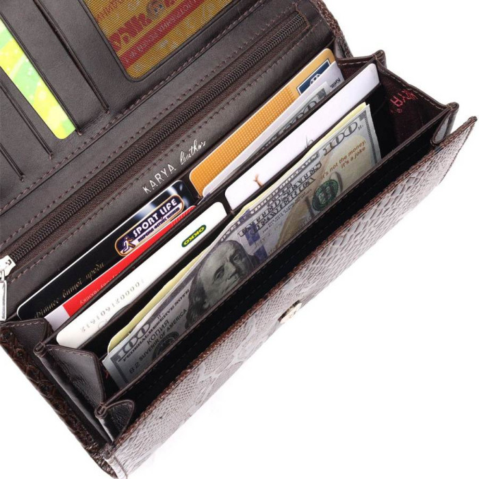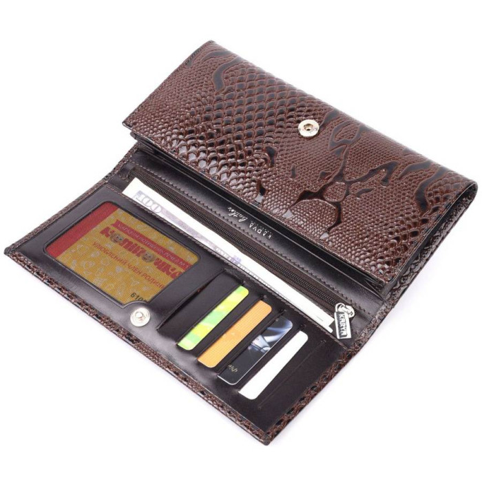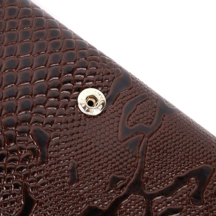 Чудовий жіночий гаманець із натуральної шкіри, з тисненням під рептилію. Складається аксесуар навпіл, закривається клапаном на кнопку. Якісна фурнітура доповнює та прикрашає виріб. Такий гаманець з натуральної шкіри - це ідеальний варіант на кожен день для тих, хто цінує якість, зручність та комфорт, а також чудово доповнюватиме Ваш повсякденний образ. Запакований аксесуар у фірмову коробку та пакет бренду. Вироби з натуральної шкіри завжди будуть чудовим подарунком для близької людини.