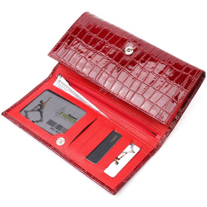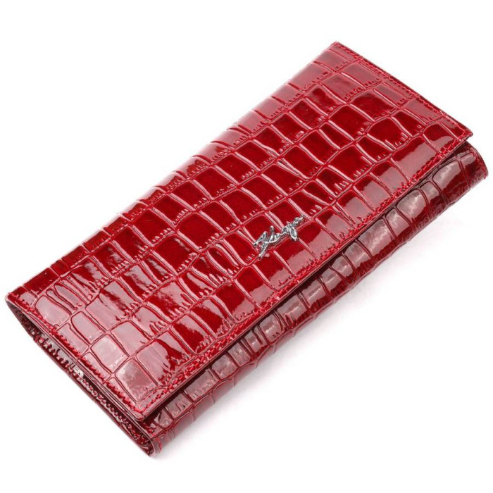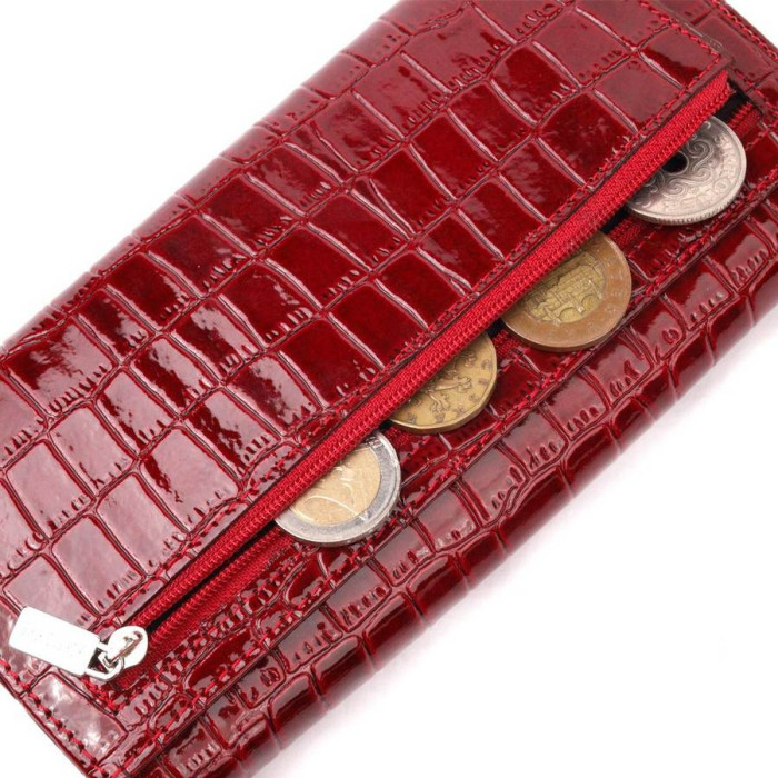 Лакований жіночий гаманець із натуральної фактурної шкіри, з тисненням під крокодила. Складається аксесуар навпіл, закривається клапаном на кнопку. Якісна фурнітура доповнює та прикрашає виріб. Такий гаманець з натуральної шкіри - це ідеальний варіант на кожен день для тих, хто цінує якість, зручність та комфорт, а також чудово доповнюватиме Ваш повсякденний образ. Запакований аксесуар у фірмову коробку та пакет бренду. Вироби з натуральної шкіри завжди будуть чудовим подарунком для близької людини.