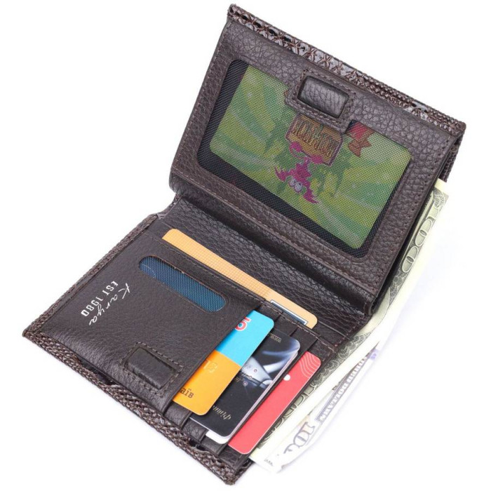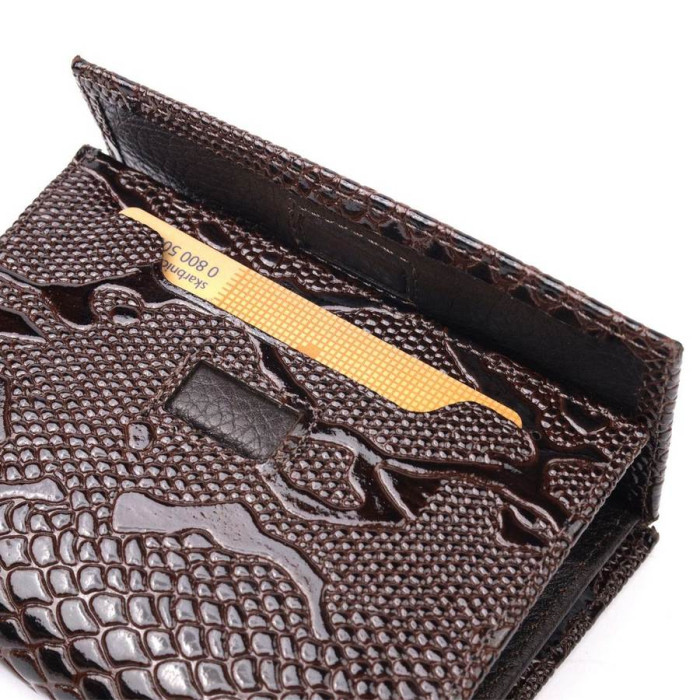 Компактний жіночий гаманець з лакованої натуральної шкіри з тисненням під рептилію. Якісна фурнітура доповнює та прикрашає виріб. Такий гаманець з натуральної шкіри - це ідеальний варіант на кожен день для тих, хто цінує якість, зручність та комфорт, а також чудово доповнюватиме Ваш повсякденний образ. Запакований аксесуар у фірмову коробку та пакет бренду. Вироби з натуральної шкіри завжди будуть чудовим подарунком для близької людини.