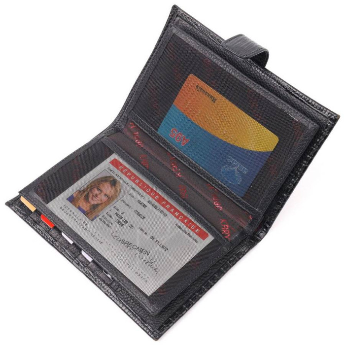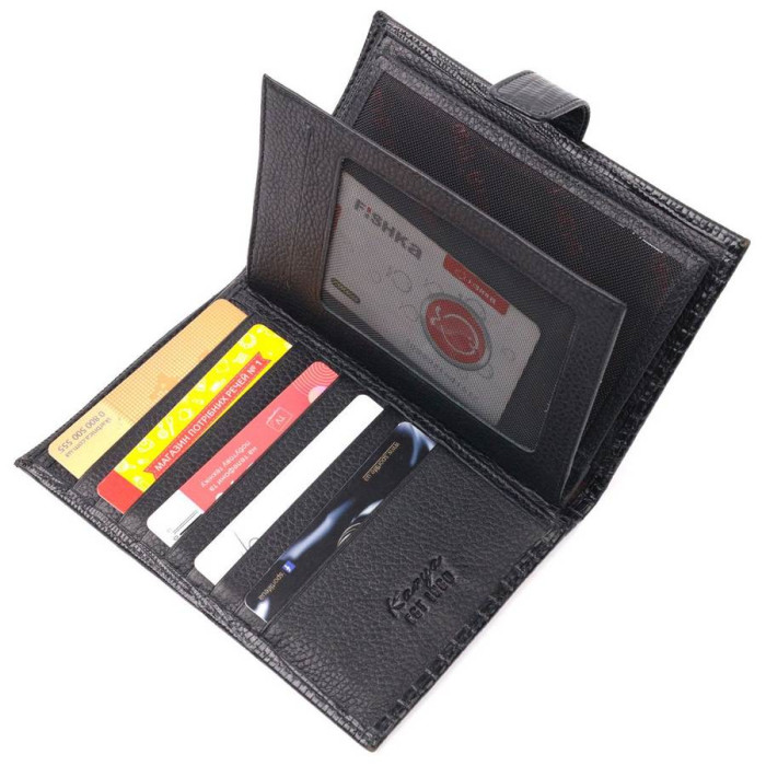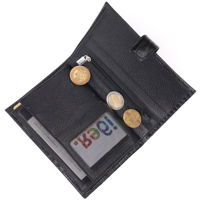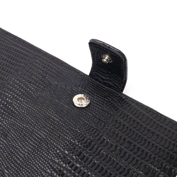 Місткий чоловічий гаманець із натуральної фактурної шкіри, з тисненням під рептилію. Модель вертикального типу складається навпіл і закривається хлястиком на кнопку. Короткий дизайн, відмінно лягає в руку, поміщається в будь-яку сумку. Аксесуар упакований у фірмову коробочку. Вироби з натуральної шкіри завжди будуть чудовим подарунком для близької людини.