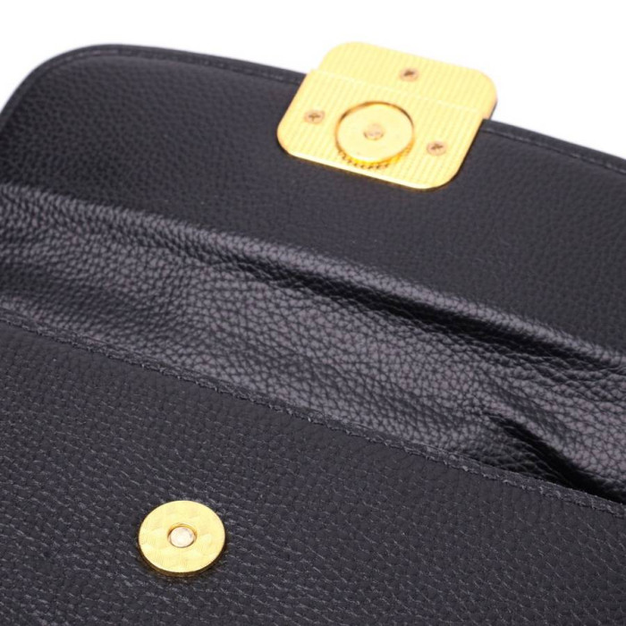 Оригінальна сумка з твердим каркасом із натуральної шкіри з високим показником якості та зносостійкості. Аксесуар складається з основного відділення, що закривається на блискавку та клапаном на магніт, усередині якого знаходиться потайна кишеня на блискавці та кишеня відкритого типу. Носити сумку можна на плечі, через плече для цього є незнімний шкіряний ремінь, що регулюється, а також як клатч під рукою. У виробі використано якісну фурнітуру кольору жовтого золота.