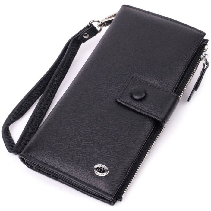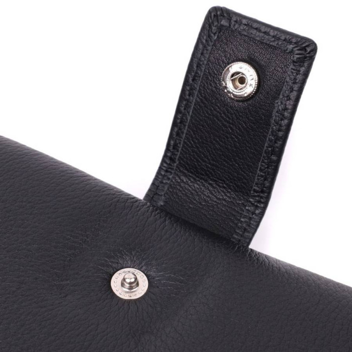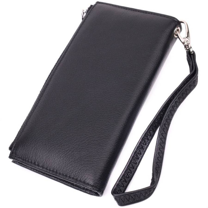 Класичний вертикальний жіночий гаманець із натуральної добротної шкіри. Особливістю моделі є те, що її можна носити на кисті, для цього передбачений шкіряний кистьовий ремінь, що знімається. Аксесуар складається з чотирьох відділень для купюр, сімнадцяти осередків для пластикових карток, двох кишень під плівкою та монетниці. З таким гаманцем Ви проходите не один рік. Модель упакована в коробочку, що дуже зручно, якщо виріб призначений для подарунка.
