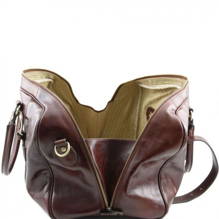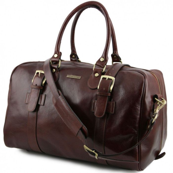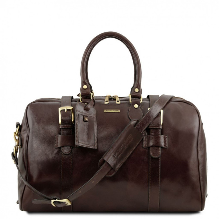 Маленька шкіряна дорожня сумка Tuscany Leather Voyager або оригінальний weekender, брифкейс, лептоп кейс - це розкіш, яку ви можете дозволити собі для відпочинку або відряджень. Нова модель виготовлена із натуральної телячої шкіри рослинного дублення. Виріб демонструє одне містке відділення на металевій блискавці YKK та додаткову внутрішню кишеню. Особливістю сумки є декоративні пряжки, що прикрашають лаконічний вигляд аксесуара. У комплекті йде:
