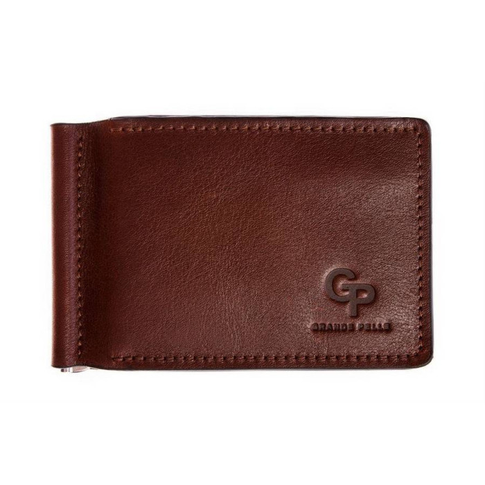 Затиск з монетницьою, коньяк Grande Pelle 125623