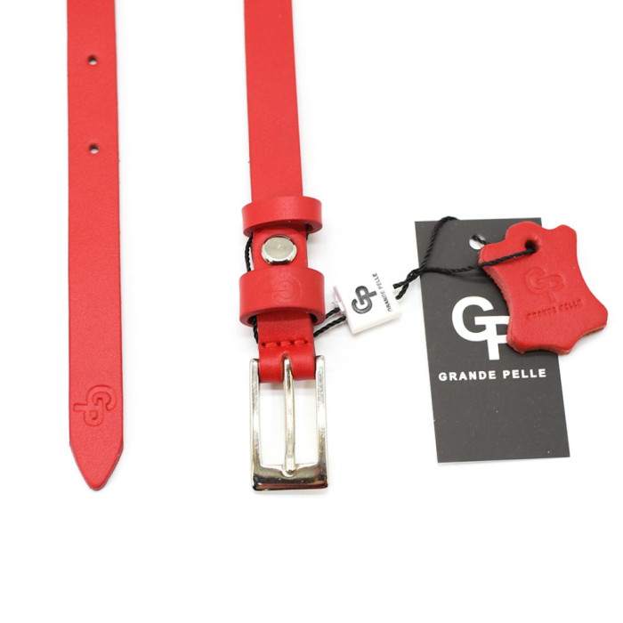 Ремінь жіночий тонкий Grande Pelle 1602050033 у червоному кольорі.