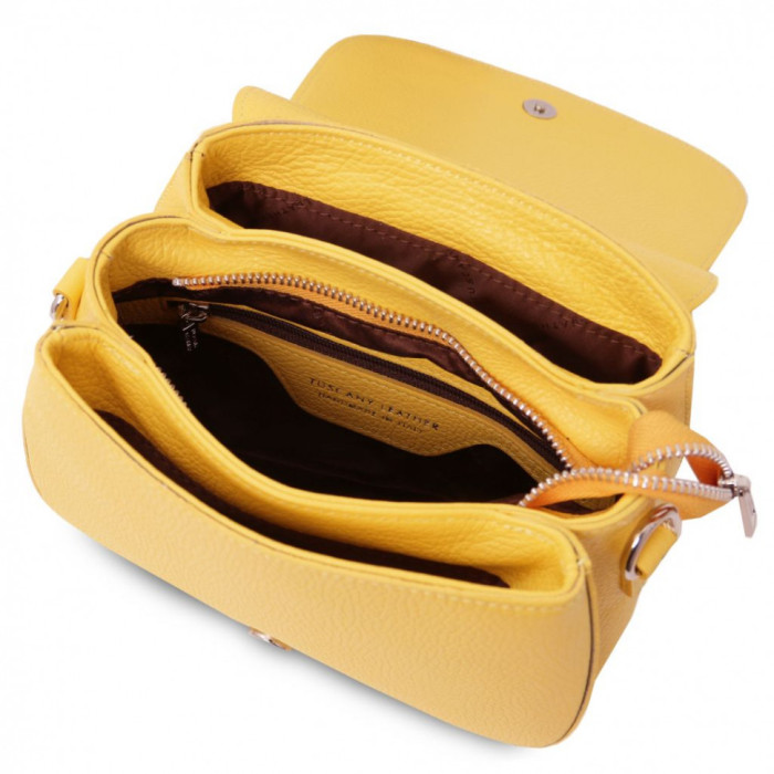 Жіноча сумка месенджер крос боді Jasmine від Tuscany TL141968 - три відділення, люкс шкіра, шкіряний ремінь на плече, фірмовий підклад тканини. Усі три відділення знаходяться по клапану на магніті. Центральне відділення закривається на блискавці, передній та задній - закриваються тільки клапаном. Всередині кишеню на блискавці та відкриту кишеню.