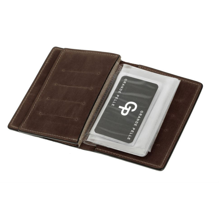 Обкладинка для документів, паспорта, автодокументів з відділом для карт, коричневий (матова) Grande Pelle