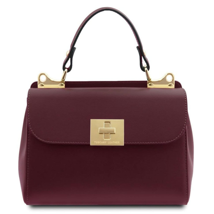 Жіноча шкіряна сумка з Італії. Класичний дизайн із елегантними замками на клапанах з двох сторін.