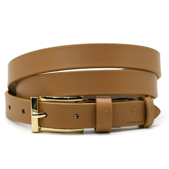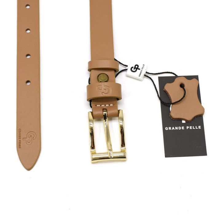 Ремінь жіночий тонкий Grande Pelle 24570040033 у світло-коричневому кольорі.
