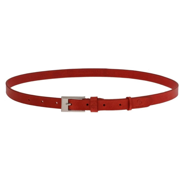 Жіночий шкіряний тонкий ремінь Lungo червоний Grande Pelle 260300300 шириною 20мм (2см товщина) із пряжкою кольору срібло.